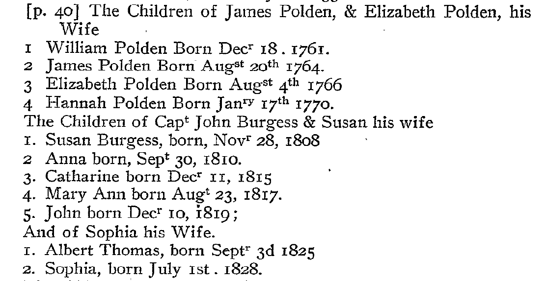 James Polden Jr married Bethia Donham in 1784 and they also had four children including John Polden born 1792